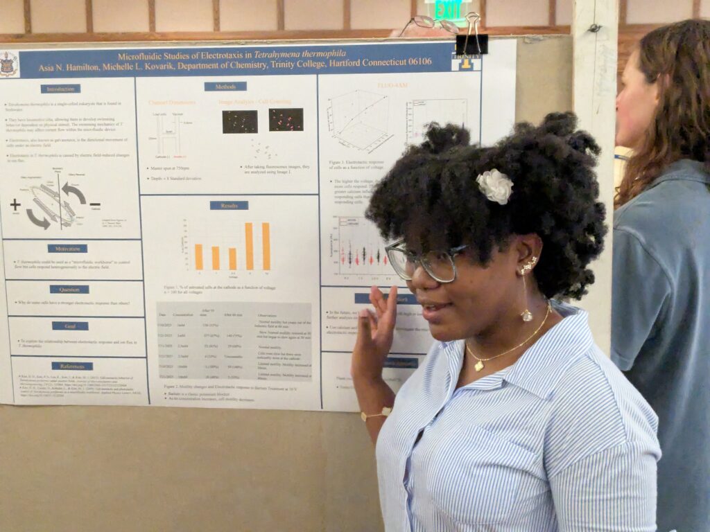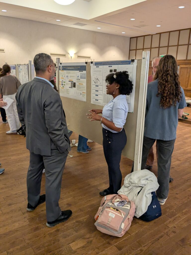 Alex Curbelo ’25, Sharon Sango ’25, and Asia Hamilton ’27 presented in the undergraduate poster session on Wednesday.